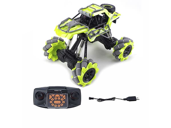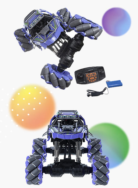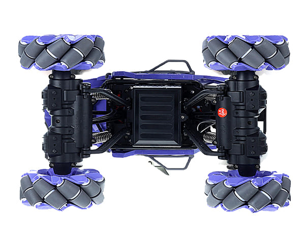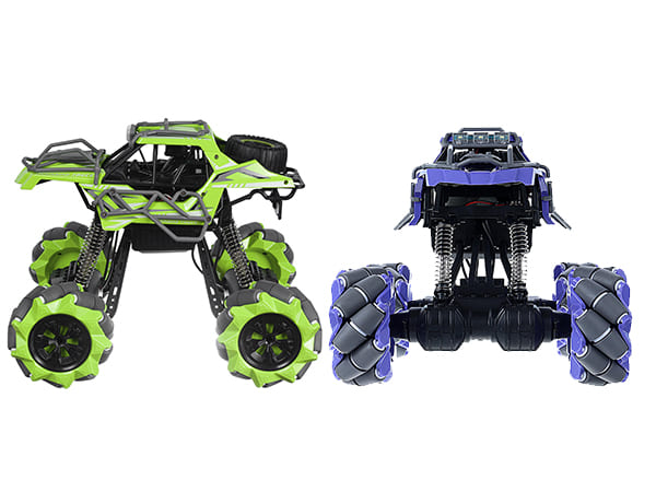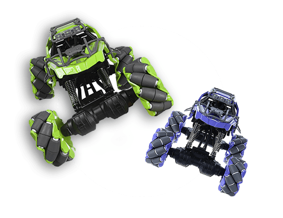• модель 2019г. оснащена огромными 10см колесами, внутри которых расположены дополнительные резиновые бочонки, за счет них машинка умеет ездить боком, крутиться на месте и заезжать на высокие подъемы.